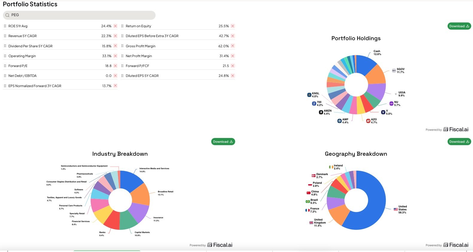 On valuation, the portfolio is trading at a forward PE of 18.8 and a forward Price to Free Cash Flow ratio of 21.5. Reasonable valuation levels.